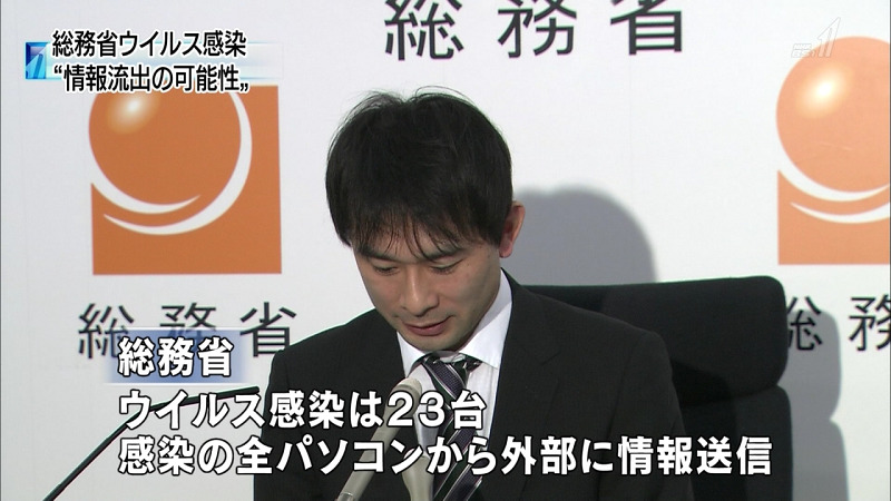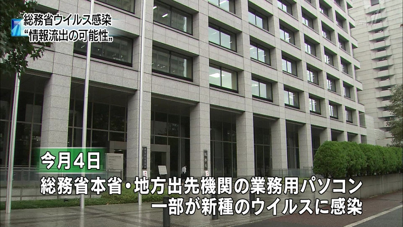 こ の問題は、4日、総務省の本省と地方の出先機関の業務用のパソコンのうち、一部が「トロイの木馬」と呼ばれるコンピューターウイルスの新種に感染していた ことが明らかになったもので、(中略)川端総務大臣は、閣議のあとの記者会見で「情報通信の総元締めの総務省でこういうことが起きたことは、極めて遺憾 だ。再発防止を図るとともに、情報流出の実態を詳しく調べたい」と述べました。